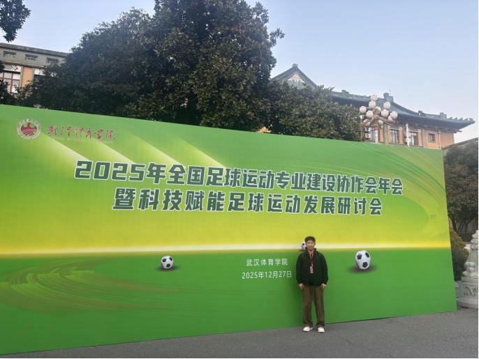 12月27日,2025年全国足球运动专业建设协作会年会暨科技赋能足球运动发展研讨会在武汉体育学院召开,全国41所开设足球运动专业的院校代表及国家教育部、国家体育总局、中国足球协会相关领导参会。河北传媒学院足球学院院长助理冯云浩代表学院出席会议。